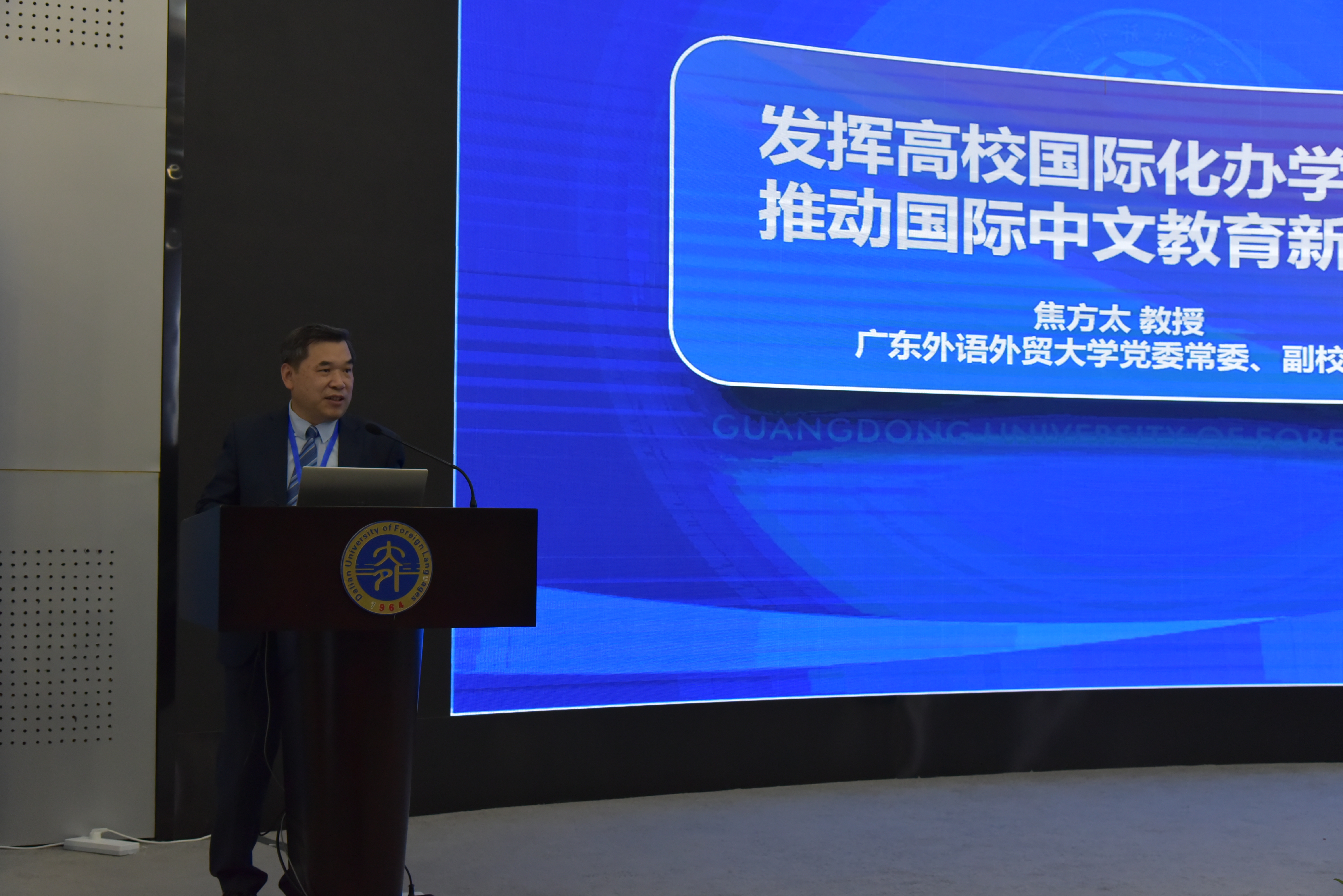 会上,焦方太做了题为《发挥高校国际化办学优势 推动国际中文教育新发展》主旨报告,回顾了国际中文教育发展现状,归纳总结了国际中文教育的发展历程,研判了国际中文教育的发展趋势、机遇及挑战。他还介绍了高校在推动国际中文教育事业上能发挥的语言、学科及专业、资源及平台优势。焦方太随后分享了广外在推动国际中文教育上的实践,包括发挥多语种优势,培养“中文+多语种”国际中文教师后备人才;重视学科交叉融合,打造“中文+专业”国际中文教育品牌;发挥平台机制作用,打造协同发展合作共赢生态圈;利用国际资源优势,打造“一带一路”交流合作网络等。他认为,推动国际中文教育事业发展,外语院校“大有可为”。高校应共享国际交流资源,搭建国际中文教育全球化平台,全力构建全球合作网络,促进高校国际中文教育的协同发展。