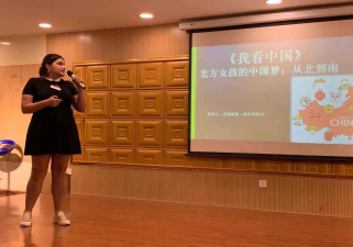 留学生学院俄罗斯籍选手克谢妮娅同学则以《北方女孩的中国梦:从北到南》为题分享了她留学中国的经历以及她认为的中国“新四大发明”。她时而风趣、时而严肃的台风给人留下了深刻的印象,也成为了演讲环节的点睛之笔。