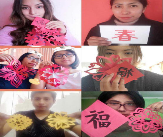 孔院教师们根据学生的汉语水平选择了灵活多样的的活动形式庆祝中国传统春节,在暑期强化班上随堂开展了“喜迎新春”春节系列线上文化课和形式多样的庆祝活动,如初级班的新春歌舞教学、中级班的写“福”剪纸活动、以及高级班的中文写作和美食烹饪文化体验活动,深受学员及其家人的喜爱。学生及家人积极参与、携手合作,共同体验着中国新年带来的吉祥与喜庆。尽管秘鲁当地疫情依然严峻,但学员学习汉语的热情丝毫不减。精彩热烈的春节庆祝活动不仅加深了学员对中国文化的认识和了解,也为秘鲁学生及家人带来了新年的祝福和希望。