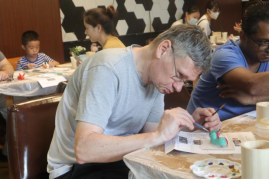 活动主要分为泥塑知识讲解和手工制作两个部分。主持人冯汇杰采用双语向外教们介绍了大吴泥塑的历史来源以及传承的重要性,并穿插视频播放,促进外教们对大吴泥塑的了解。在知识讲解后的竞答环节,外教们都跃跃欲试,现场气氛十分活跃。动手体验部分主要分为两个环节,成品上色和笔筒制作,通过模拟大吴泥塑的贴塑环节,让外教们更加了解大吴泥塑的制作过程。在制作过程中,外教们认真聆听志愿者们的讲解后,充分发挥创作灵感,在泥塑制作中大显身手,纷纷以各自独特的视角和方式呈现了中国传统文化的特色。最后,“青苗拾遗”团队为现场所有参与者颁发了“大吴泥塑守护人”的证书。