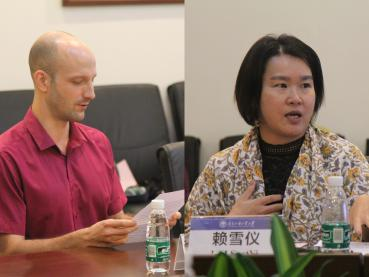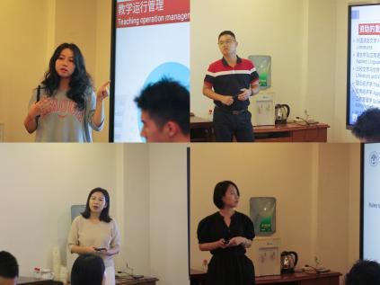 会议还邀请了相关部门代表就与外教密切相关的教学、科研、职称评定等工作进行了介绍。教务部代表白歌乐从教学计划、教学运行和教研管理三方面,鼓励外教积极参与学校的教学研究和管理,在教学和教研中发挥自己的特长。科研部负责人骆泽深、何静在会上详细介绍了各项工作制度和支持政策,协助外教尽快了解我校教学科研和成果认定等工作相关管理规定。人力资源部负责人陈钰杭介绍了外籍教师职称评审事宜,就教师评审、聘用条件、申报流程等方面展开了介绍。