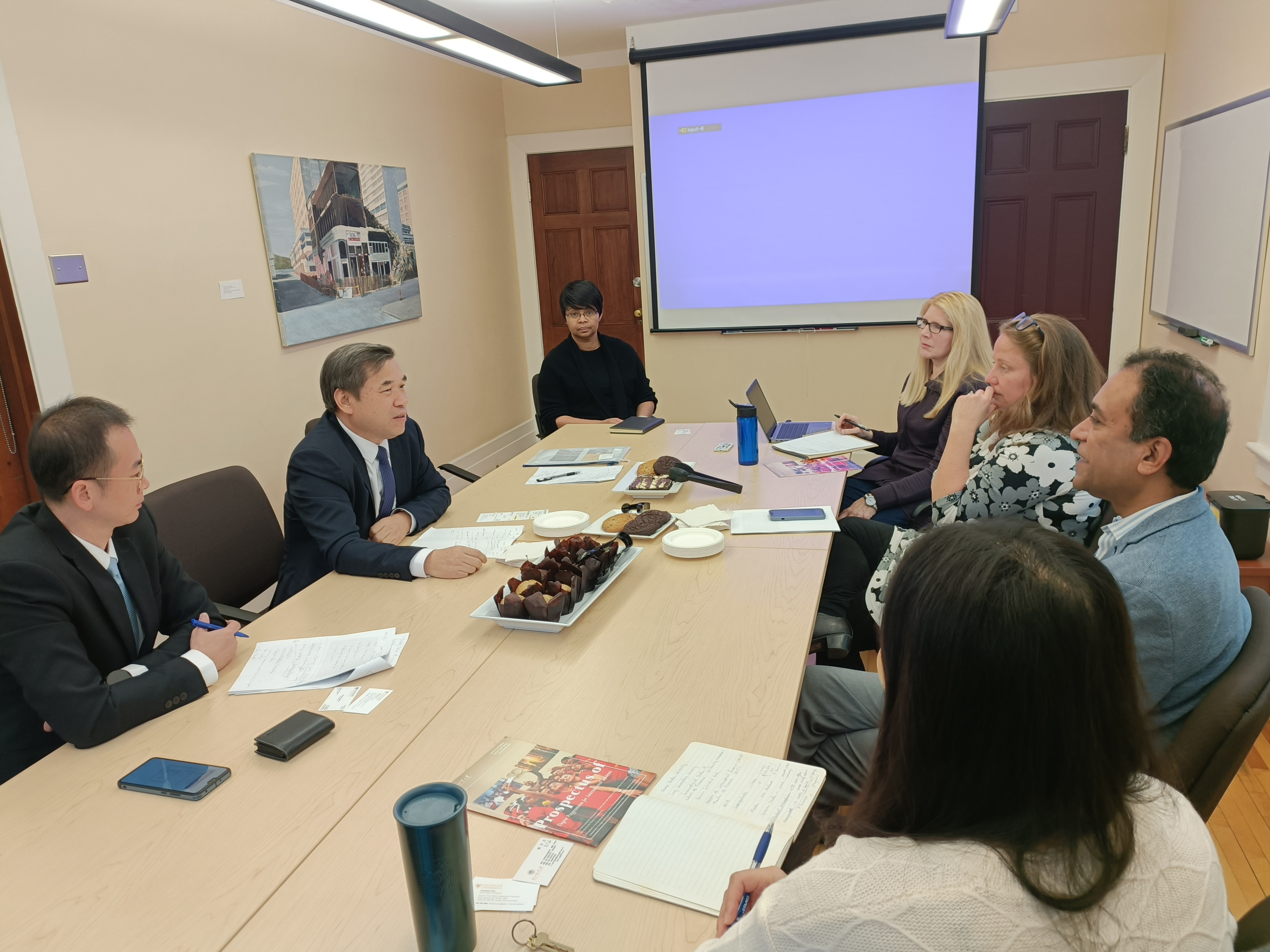 在加拿大达尔豪斯大学期间,焦方太等一行在国际事务协理副校长Dr. Balakrishnan Prithiviraj、国际合作处处长Megan Chipp的陪同下,先后走访了管理学院、经济学院、法学院,以及人文学院,就学生交流、教师互访、科研合作等方面进行了洽谈。Balakrishnan对广外代表团首次访问达尔豪斯大学表示热烈欢迎,并表示希望通过此次访问,能加深两校之间了解,为下一步的实际合作奠定良好基础。焦方太表示,新斯科舍省是广东的友好省州,广外作为地处广东的一所外向型的大学,始终高度重视与国外高校的交流与合作,此次到访达尔豪斯大学,希望能在管理、经济学、法学、外语及国际中文教育等方面开启新的合作。