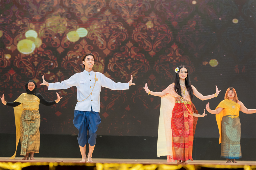 一曲《犀鸟》舞幽篁,五名印尼学生头戴羽冠、手握羽翼,随鼓点律动,以曼妙的舞姿演绎达雅族神话。海风、热浪、沙滩,太平洋岛国的学生自信大方、激情四射,用热情奔放的《太平洋现代舞蹈》将观众带入夏日的太平洋岛国。金色的暖光灯下,泰国留学生挥扬旗帜,为我们带来《泰国力量》。伴随着悠扬的民族歌声,他们向观众展示了一幅泰国学生青春洋溢的校园生活图卷,将全场气氛推向高潮。