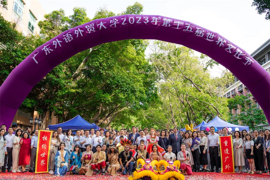 11月9日,白云山校区主校道上人声鼎沸,校党委书记石佑启为醒狮点睛,第十五届世界文化节盛大开幕。本次世界文化节以“相约世界 重逢广外”为主题,由外国文化系列讲座、世界美食长廊和晚会三部分组成。世界文化节是彰显我校多元文化特性的亮丽名片,是展现我校国际化形象的重要窗口,各驻穗总领馆代表、省内外高校领导、留学生与广外师生校友齐聚一堂,共庆嘉年华。
