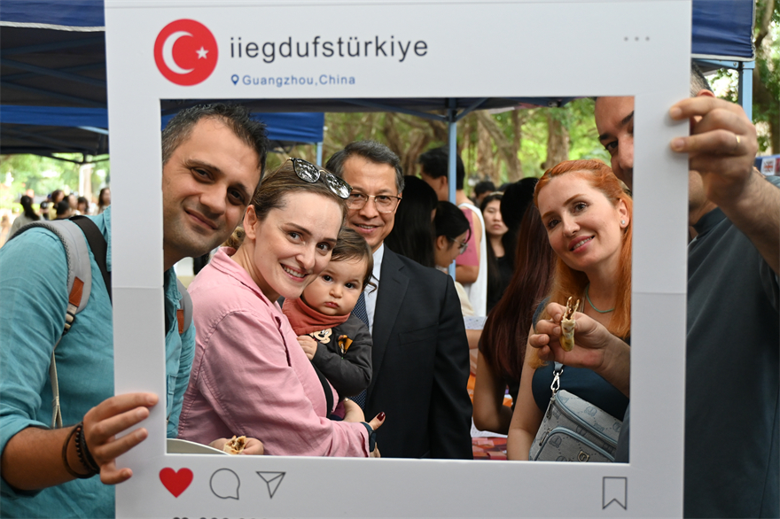 开幕式后,“美食长廊”精彩开启,来自五大洲20个国家和地区的各摊位中外学生汇聚美食长廊。出席领导与嘉宾参加美食长廊游园活动,与参加活动的师生亲切交流。