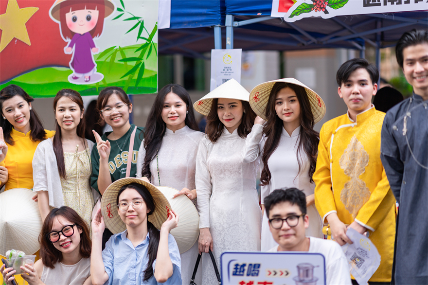 来自老挝语专业的麦楚轩正在和外国友人一起随着音乐忘情地舞蹈。“这是我学生生涯中最后一次的世界文化节。能够再次参加世界文化节,我非常激动!”来自塞尔维亚的Nikolic兴奋地告诉记者,“在美食长廊上,我充分地感受到世界文化的活力。来自不同国家地区的朋友们品尝世界各地的美食、试穿民族特色服饰,还纷纷合影留念,所有人脸上都洋溢着微笑,我很享受这样的氛围!”忙碌于摊位的卡西米真挚地分享道:“通过这次文化节,大家对也门文化产生了浓厚的兴趣。感谢广外举办这次活动,也感谢大家喜欢我们的文化。”中外师生友人共同漫步于世界美食长廊,感受各国文化交融碰撞,欣赏和而不同的文化多元美。