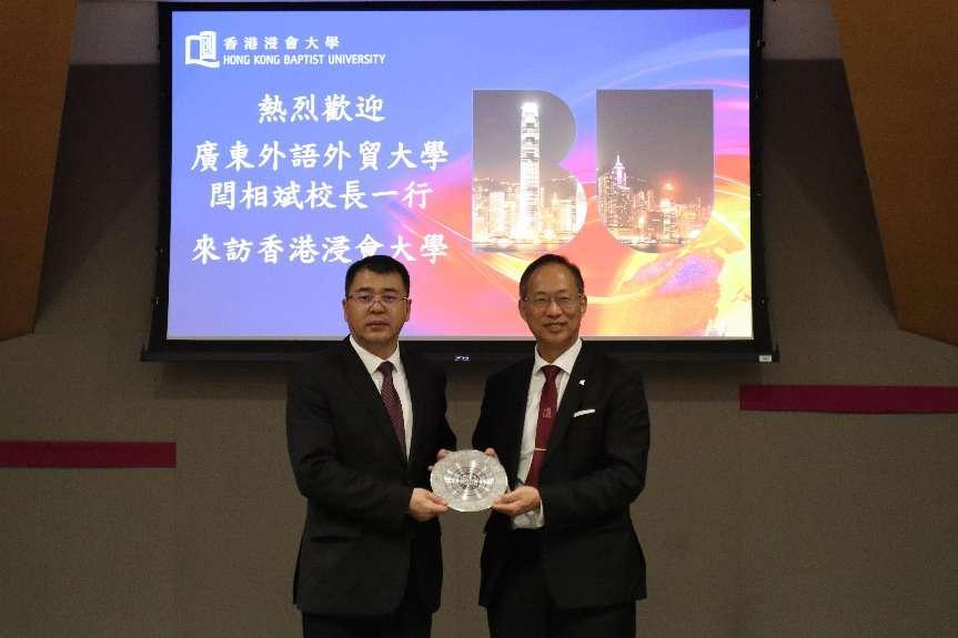 香港浸会大学校长卫炳江向闫相斌赠送纪念品