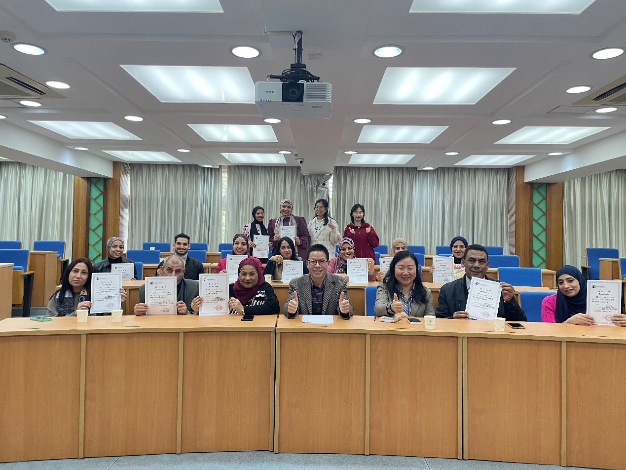 在结业仪式上,国际交流合作部副部长、孔子学院办公室副主任徐艺青对两校合作进行了展望,并期待未来能进一步合作共建艾因夏姆斯大学中文专业。邱春安教授总结了研修班的课程安排,并对学员们冒着严寒坚持听讲的精神表示感动,希望未来中文学院和艾因夏姆斯大学在联合培养研究生、开展短期研修、互派师生交流等方面继续加强合作。学员代表密尔法特、大力、哈赛宁等教授也对研修班的丰富内容和授课教师的专业素养表示满意,并期待在中文专业建设方面得到广外更多的支持和帮助。
