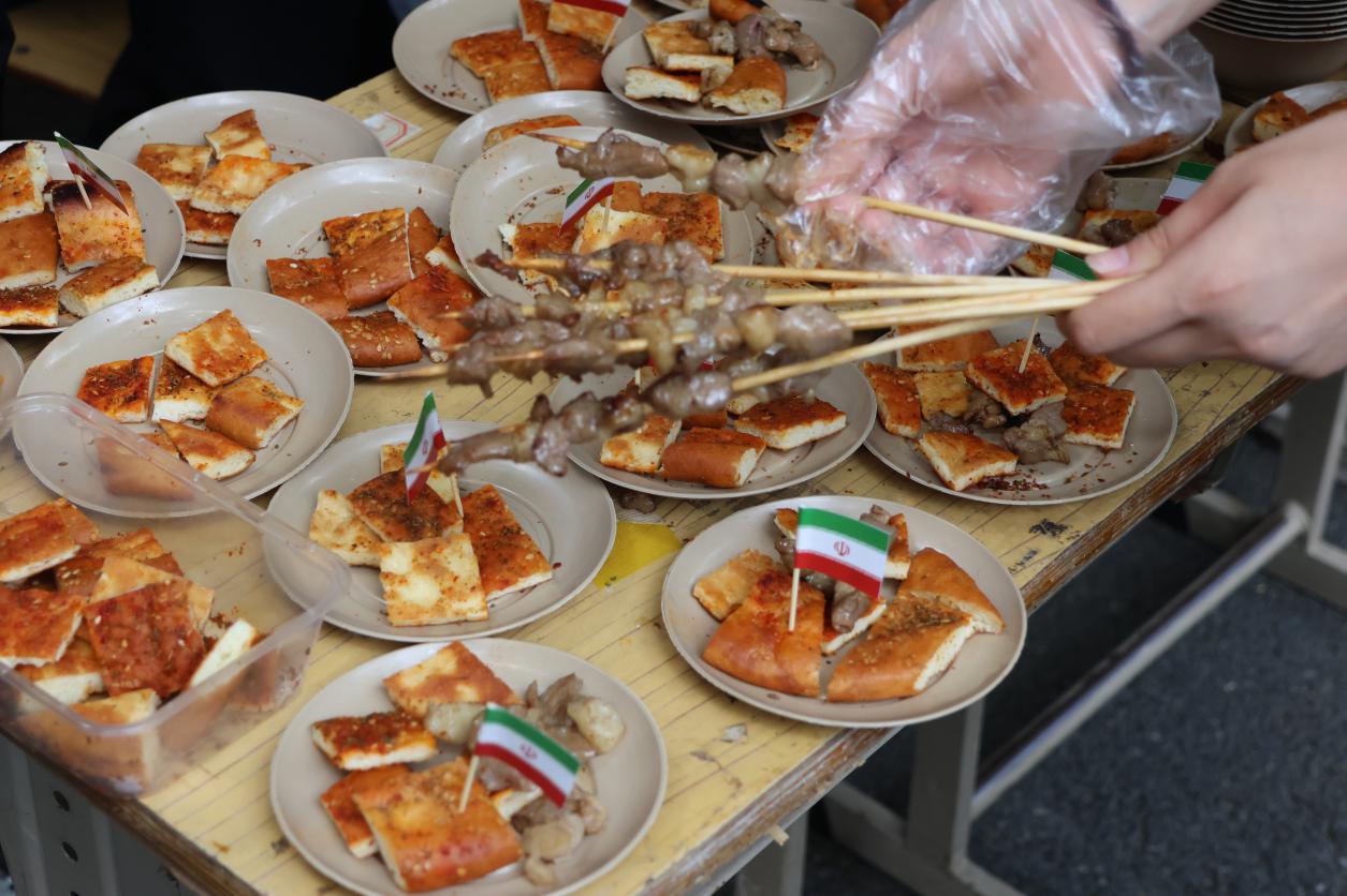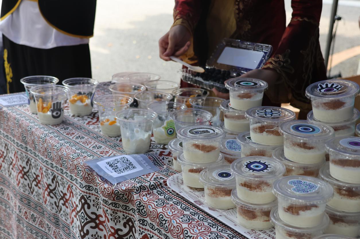 美食集市上,各语系学生身穿对象国的特色服饰,在摊位上精心准备对象国的经典美食,吸引来客前来品尝。有来自阿拉伯的沙瓦玛卷饼,伊朗的藏红花鸡汤,朝鲜族的辣炒年糕,坦桑尼亚的羊肉抓饭,土耳其的米布丁,巴基斯坦的灌汤脆球,希伯来语的法拉费丸子,印度的咖喱料理,孟加拉国的特色小吃拼盘等不同地域的美食。此外本次文化节还联合了中国文化摊位,共同欣赏中文书法,感受中华美食。参与者沉浸在多元文化之中,领略不同文化的魅力。