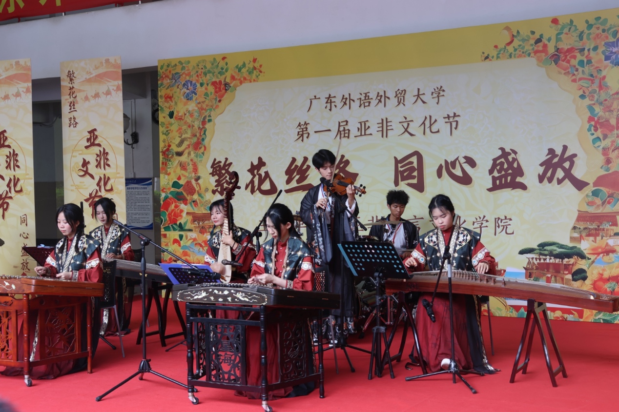 本网讯 5月16日下午,广东外语外贸大学亚非语言文化学院第一届亚非文化节在白云山校区隆重举行。广东省人民政府外事办公室原主任、广外非洲研究院创院院长傅朗,校党委副书记唐锐,亚非语言文化学院相关负责人,学校相关职能部处、学院和研究机构等单位负责人、亚非学院全体师生以及广外附属科学城实验学校师生代表参加了开幕式。