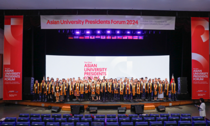 在韩国东西大学举办的第22届亚洲大学校长论坛,共吸引了47所高校的近100位代表出席。闫相斌代表亚洲大学校长论坛秘书处致辞,感谢各成员高校积极参与论坛活动,推动亚洲高校之间的交流与合作,并希望大家能继续共同携手,为亚洲乃至世界的高等教育交流贡献力量。会上,各大学校长及专家代表就亚洲教育合作以及ASIAN ALLIANCE UNIVERSITY(AAU)计划进行深入探讨,就积极应对新的国际形势和国际教育需求,进一步加强AUPF建设和推动交流合作达成共识。根据常务理事会决议,东西大学校长张济国向闫相斌转交AUPF旗帜,广外将于2025年举办第23届亚洲大学校长论坛。