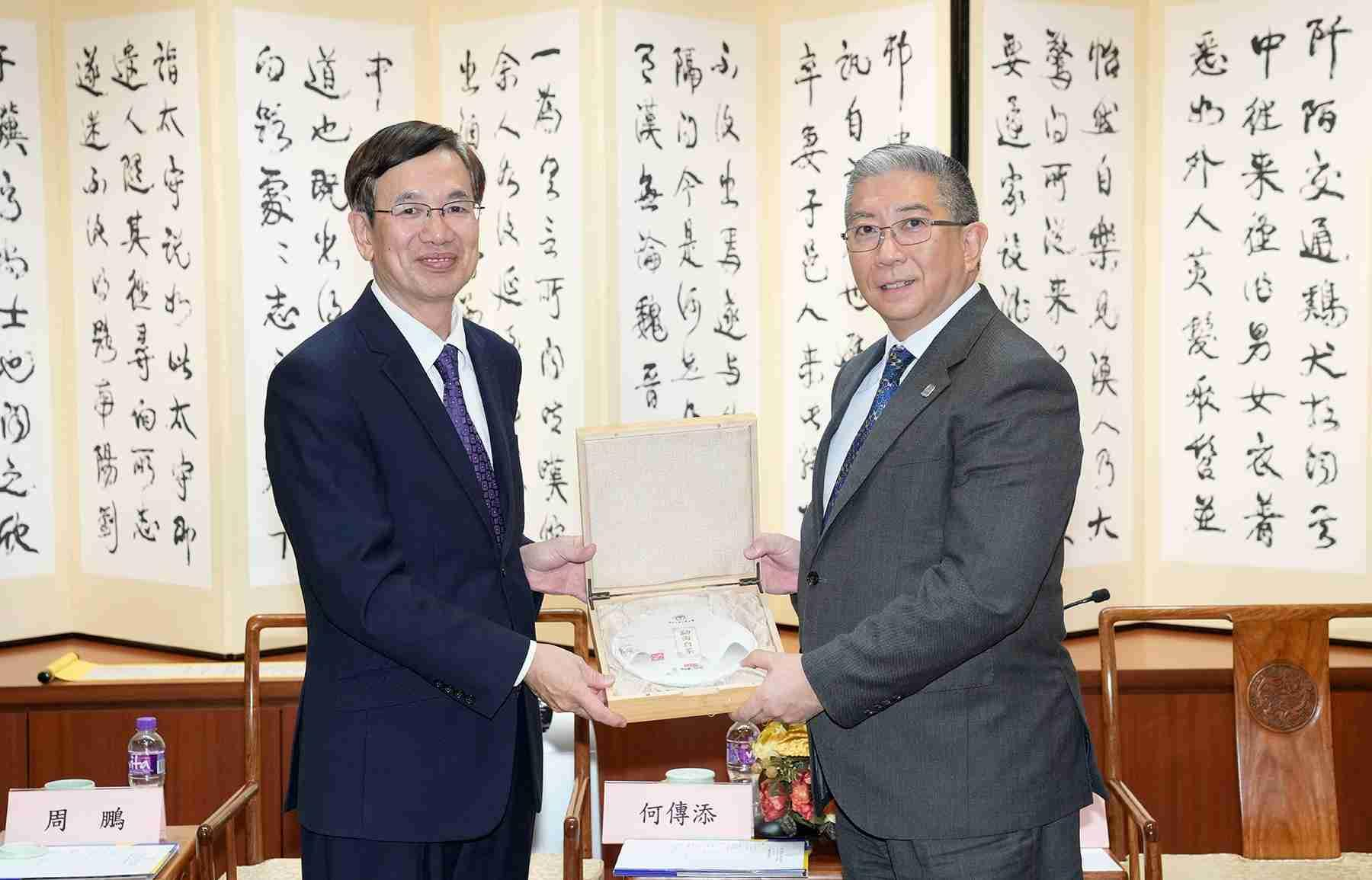 12月6日下午,何传添先后拜访了澳门城市大学及澳门科技大学。在澳门城市大学期间,该校校长刘骏、教育学院院长程李颖、人文社会科学学院副院长黄国文参与座谈。刘骏校长向代表团介绍了香港城市大学的历史、发展与愿景,提出了以数据科学赋能语言与文化、金融科技、大健康等各领域的建设理念,并期待与广外开展更多合作,推动两校在新文科建设取得新的突破。何传添对刘骏校长等的欢迎表示感谢,并对澳门城市大学取得的进步和清晰的发展愿景表示认可,期待两校能发挥人文社科类高校资源优势,加强合作,合力服务国家和区域发展需求。访问期间,两校续签了合作备忘录和交换生协议。