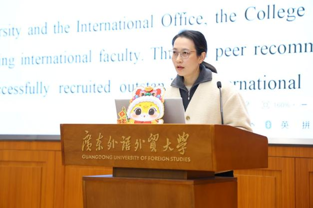徐艺青副部长汇报了2024年度外专外教工作,她提到,学校今年再次荣任广东省外国专家委员会第六届理事长单位,这不仅是对我校外专工作的认可,也有助于学校继续与省内各高校共享资源、协同发展。国际部积极推进PRIME计划实施方案中的“外专外教队伍智汇计划”,加大海外人才引进力度,本年度累计聘用长期外教91名;大力支持各学院开展引才引智项目,本年度共立项通过了29项海外名师项目,创5年新高;加强与相关部门、用人单位合作,持续优化外教管理服务水平。