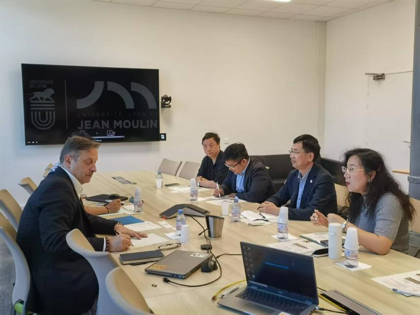 随后,代表团拜访了新中法大学并参加高校见面会,新中法大学副主席、高校委员会主席阿兰·拉巴特(Alain Labat),新中法大学暨里昂中国关系促进中心主管邹欢欢接待。见面会中,我校代表团就与新中法大学建立合作联盟,推动马克思主义学院教师和研究生学术交流机制等进行了探讨。