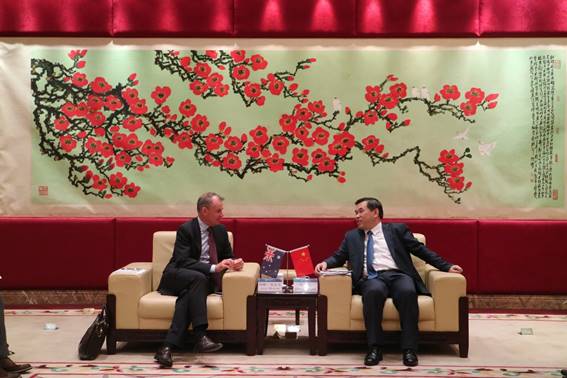 本网讯 1月17日,澳大利亚迪肯大学(DeakinUniversity)副校长约翰·莫洛尼(JohnMolony)来访,我校副校长焦方太在行政楼一楼贵宾厅会见来宾。