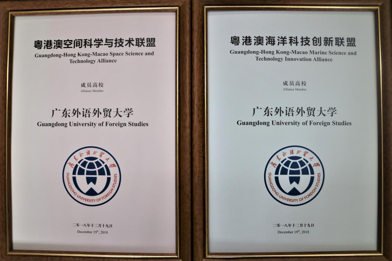 2018年12月19日,粤港澳空间科学与技术联盟、粤港澳海洋科技创新联盟成立大会在中山大学珠海校区伍舜德国际学术交流中心举行。我校副校长阳爱民出席大会并接受联盟成员高校授牌。中山大学、香港中文大学、澳门大学等粤港澳三地20多所高校加入联盟。