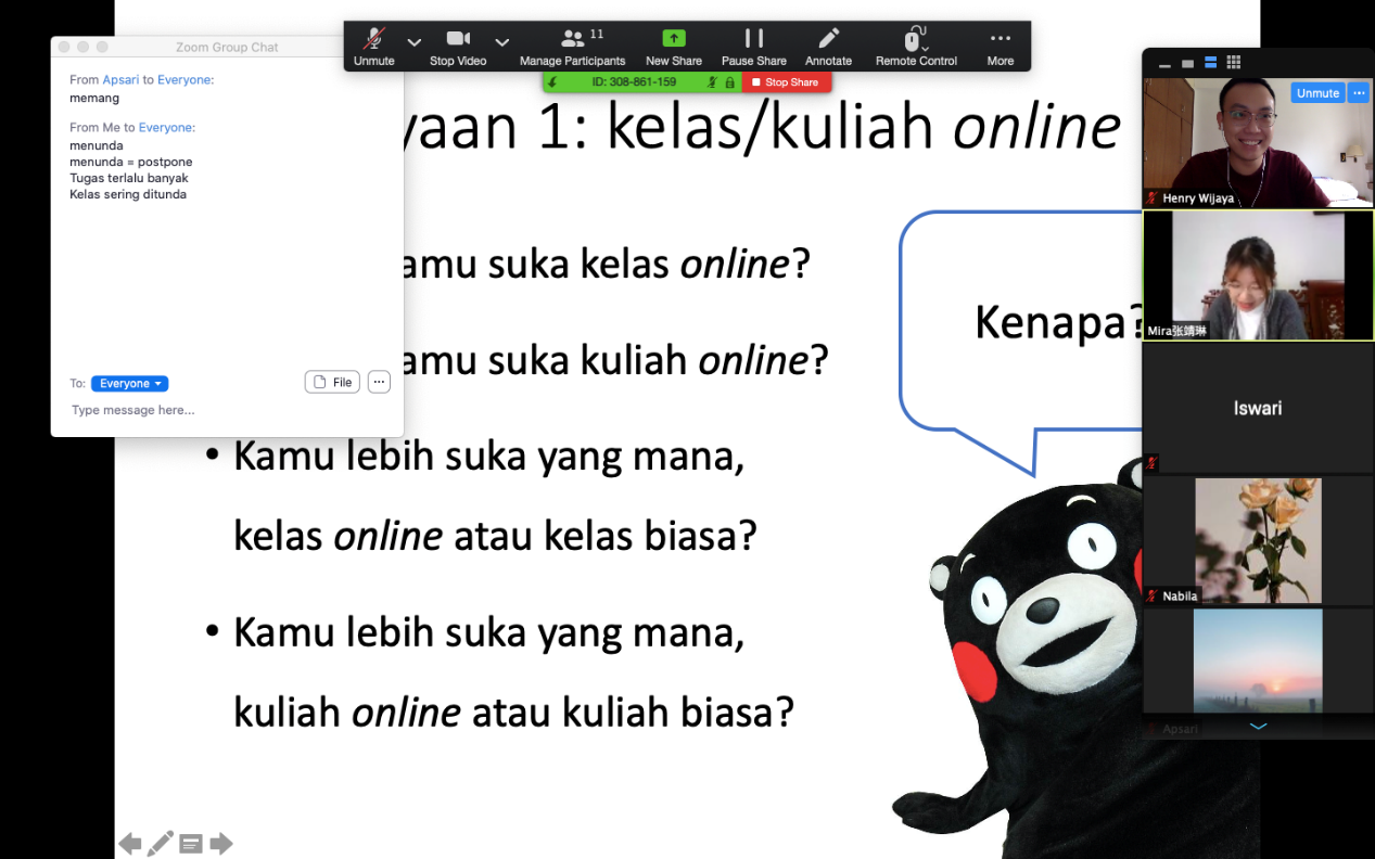 编者按:受疫情影响,各高校开学时间纷纷延迟。为积极响应“停课不停学”号召,广外云课堂于2020年3月23日全面开启。线上教学是一次全新的挑战,对于身处世界各地的外教们尤甚。与学生们一屏之隔,实则相距万里之遥,需要克服距离、时差、网络状况等一系列问题。面对新的教学模式,外专们将如何基于自身专业、对网络教学的理解和态度,通过创新的方式呈现一场穿越时空、跨越山海的“空中课堂”?我们一起来看看东方语言文化学院印尼语外教Henry Wijiya(黄子谦)的精彩直播课。