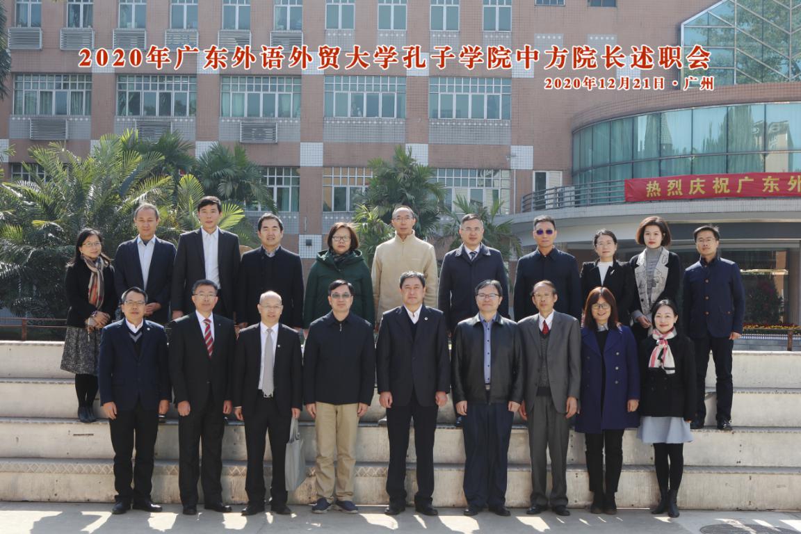 本网讯 12月21日上午,2020年广外孔子学院中方院长述职会议在北校区行政楼国际会议厅召开。日本札幌大学、俄罗斯乌拉尔联邦大学、秘鲁圣玛利亚天主教大学、佛得角大学、埃及艾因夏姆斯大学以及葡萄牙波尔图大学六家孔院(课堂)的中方院长线上线下齐聚一堂,回顾发展足迹,共谋未来发展。我校党委书记隋广军,副校长刘建达、何传添、刘海春等出席会议。