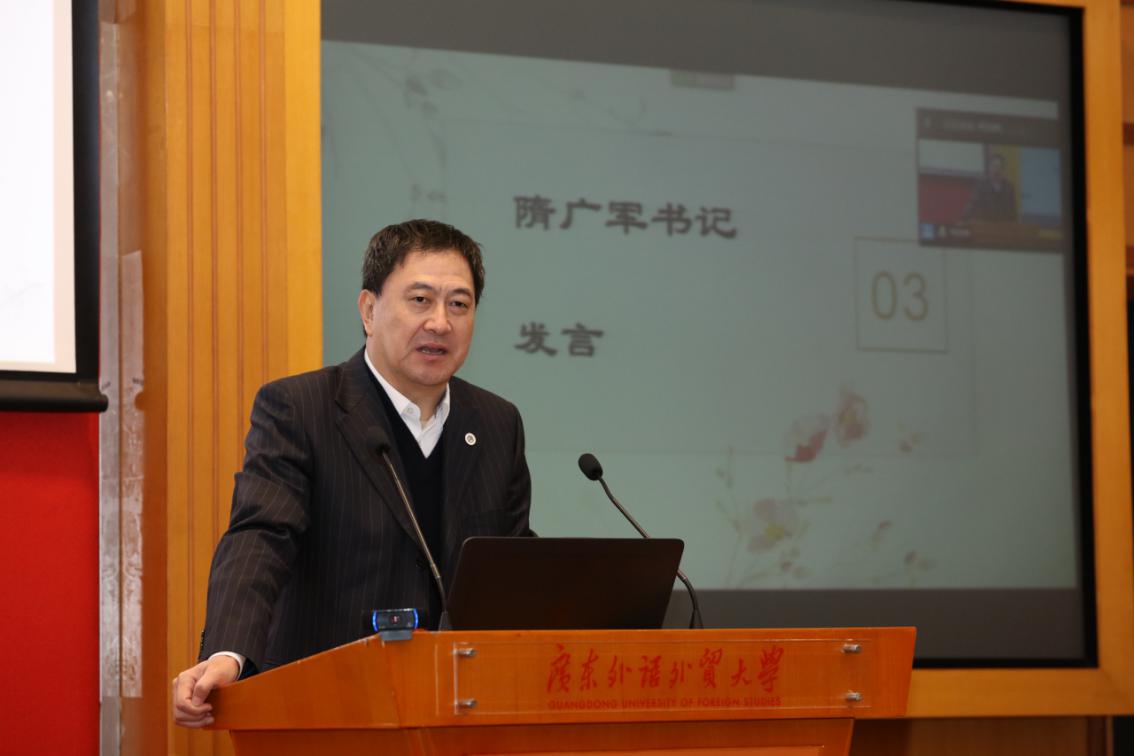 隋广军在发言中指出,各孔院在疫情期间积极抗疫,充分利用网络技术开展教学和文化交流活动,推动国际中文教育进入线上线下融合发展的新时代,为密切校际合作、促进文化交流作出了重要贡献。他表示,广外高度重视孔子学院的建设和发展,相关职能部门、教学单位要尽全力支持海外孔子学院的工作。他代表大学对各孔院中方院长表示慰问,并对各孔院外派人员的辛勤付出致以诚挚的谢意,希望参会代表能集思广益、互学互鉴,开创广外孔子学院工作新局面。