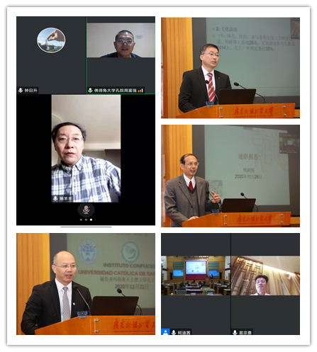 六家孔院中方院长分别进行工作述职,一致表示紧抓狠抓疫情防控工作,确保孔院正常运作,并希望未来能够进一步加强孔子学院的规划和管理,助推大学孔子学院事业发展。日本札幌大学孔子学院中方院长杨晔探讨了孔院运营问题,提出探索文化推介活动的新路径。俄罗斯乌拉尔联邦大学孔子学院中方院长何家宁强调乌拉尔联邦大学孔院的科研定位,并就筹备国际中文教育相关学术期刊进行了简要介绍。秘鲁圣玛利亚天主教大学孔子学院中方院长彭启贵简要介绍秘鲁孔院在教学与教研、HSK考试及奖学金申请、文化活动、财务管理上的特色,并表示,疫情期间两校联合举办的孔院十一周年庆典对两校密切交流起到重要作用。佛得角大学孔子学院中方院长周富强回顾了2020年的工作要点,指出中文教育已纳入到佛得角的国民教育体系中,佛得角大学孔院为此作出了重要贡献。埃及艾因夏姆斯大学孔子课堂中方院长杨韶刚总结了2020年各方面情况,同时提出今后埃及孔院重点往学术型孔院目标奋进。葡萄牙波尔图大学孔子学院中方院长易宗勇介绍疫情期间线上授课和开展文化活动的情况,并表示将在疫情好转后进一步开展汉语推广宣传活动。