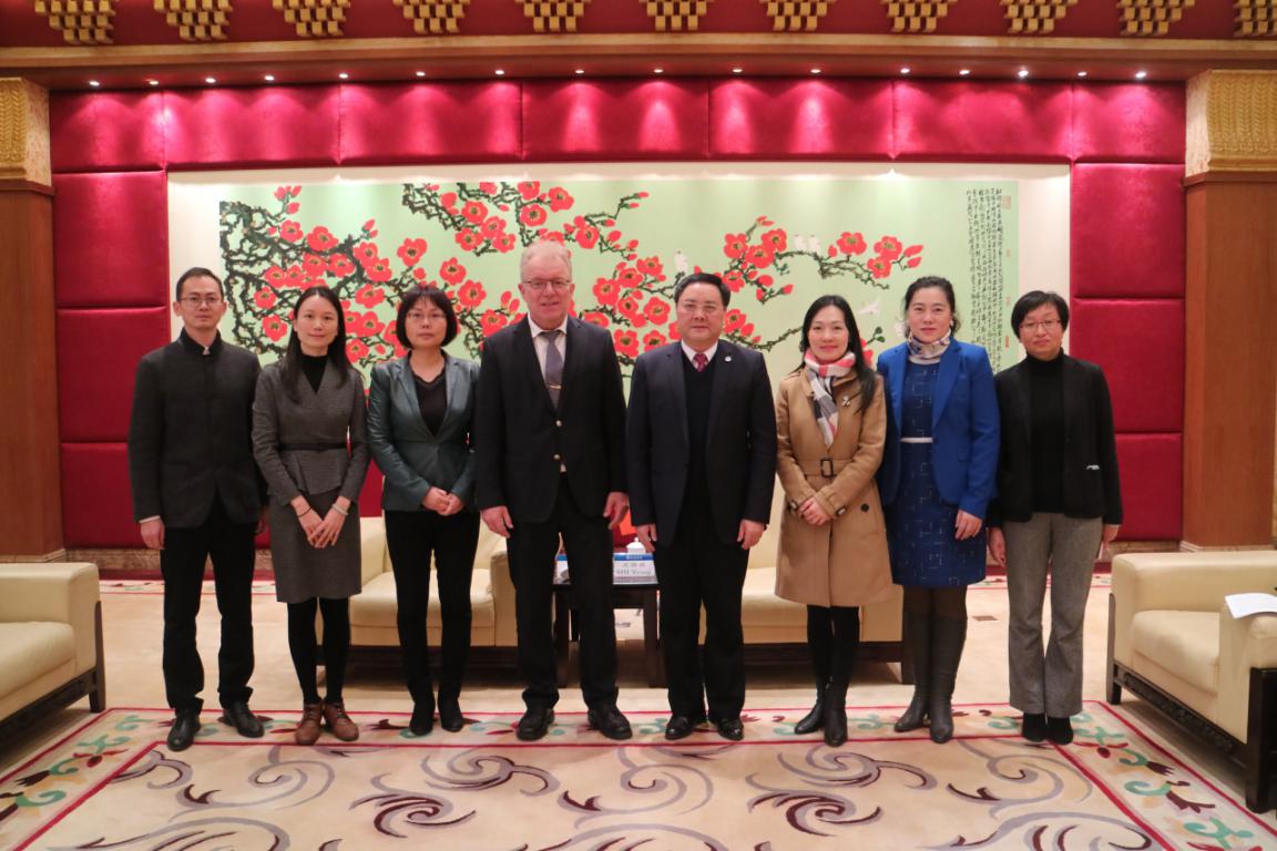 本网讯 12月18日下午,德国驻广州总领事馆总领事冯马丁(Martin Fleischer)一行来访,我校校长石佑启在北校区行政楼贵宾厅会见来宾。