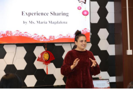 外教代表高级翻译学院的史蒂芬·瑞克(Stephen James Rake)和西语学院的玛丽亚·马格达莱娜(Maria Magdalena)分享了自己与广外共同成长的精彩故事。史蒂芬在其发言中回顾了多年来在广外的工作和生活,分享了他眼中学校的变化与进步。他提到,外教们时常小聚,有时亦会带上家人互相问候,外教之家为他们创造了一个温馨、舒适的交流空间。对此,史蒂芬表达了感谢和美好祝愿。西语学院外教玛丽亚·马格达莱娜(Maria Magdalena)则分享了她来到广外几个月来的所见所闻。她表示,广外处处有惊喜。漫步相思河畔,她能发现奇特的石头;四处走走看看,便发现历史的痕迹。她认为广外是她待过最和谐的地方,也鼓励大家多点去发现广外小小的美好。