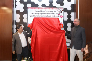 为迎接新年的到来,助力我校国际化高水平大学建设,我校全体外教发起“迎新年,我为广外国际化高水平大学建设助力”的主题打卡活动。外教们在目前自己的所在地将以“我为广外国际化高水平大学建设助力”为主题拍照并分享至个人社交媒体,以拍照打卡的方式表达对学校国际化建设的支持,齐心协力,共谋我校发展大计。焦方太和外教代表Stephen Rake 启动主题打卡活动并进行了第一次拍照打卡。