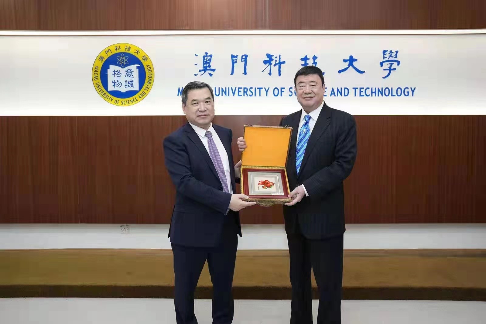 焦方太代表我校为澳门科技大学校庆赠送纪念品