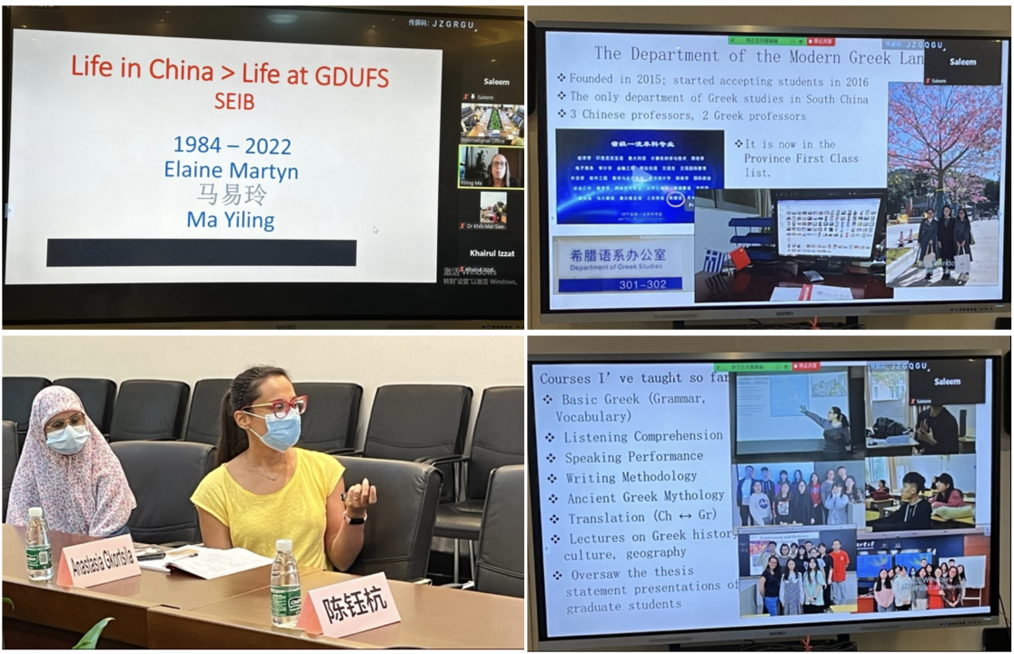 会议还邀请了3位优秀外教代表分享教学、科研经验以及广外生活。她们分别就个人在广外开展教学工作、科研工作以及日常生活进行了分享,展示了其在校期间的收获和取得的成果,并由衷地欢迎新入职外教加入广外大家庭,共同成长。