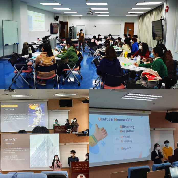 在讲座“Linguistics and Literature: Second Language Reading, Writing, and Vocabulary Learning”(语言学与文学:二语阅读、写作与词汇学习)中,课程老师介绍了二语写作和教学相关的研究,并鼓励同学们主动思考、不断提出自己的问题,以全新的视角学习写作,以创意写作的方式体验诗歌创作;围绕“English Presentation & Public Speaking Skills(英语公众演讲与展示技巧)”课程,学生分为四人一组,在鉴赏分析后作公众演讲;在讲座“World Englishes and Popular Culture(世界英语与流行文化)”中,教授Moody讲授世界范围内不同国家或地区英语发展情况及流行文化中有趣的英语语言现象;在“Chinese-English Translation Skills”(英汉翻译技巧)课堂中,教师结合经典标题翻译案例,带领同学们学习了翻译基础理论、翻译技巧。