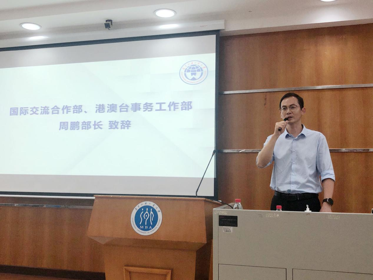 周鹏就广外教育国际化整体情况进行简要介绍,并结合个人学习、工作经历,号召青年学子“加入广外,走向世界”,希望青年学子“看世界、知世界、用国际视野为国家做出贡献”。他鼓励学生充分利用学校的优质国际教育资源,不断提升个人专业水平。