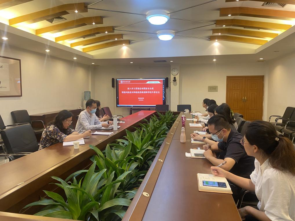 5月9日,国际交流合作部党支部在行政楼第三会议室召开支部学习会,国际交流合作部部长、支部书记周鹏围绕“深入学习贯彻总体国家安全观,增强风险意识和底线思维保障学校外事安全”做专题宣讲,支部全体党员参加学习。