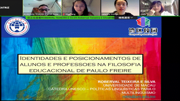 6月10日,讲坛第二讲如期开展,葡萄牙语专业知名学者、澳门大学葡萄牙语系助理教授兼研究员Roberval Teixeira E Silva应邀作题为“Identidade e posicionamentos de alunos e professores na filosofia educacional de Paulo Freire”(保罗·弗雷尔教育哲学中师生的身份与定位)的专题演讲。Roberval以巴西著名教育家Paulo Freire的教育理论为基础,阐明了教育与人类觉悟的密切联系,并向师生展示了该教育家进行成人扫盲的一系列过程和成就。除此以外,Roberval还与湾区师生分享了他在葡语课堂互动方面的观察和研究。师生们在课后踊跃发表自己的观点和看法,教授针对师生提出的疑问进行了解答。