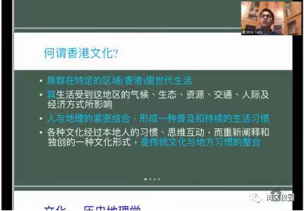 11月3日,第二场讲座由香港史学会董事兼执行总监邓家宙博士作为主讲嘉宾,围绕香港文化之吸收与传承展开。邓家宙以文化的定义引入,进而深入到香港文化的组成元素、海外文化的传入等方面,并且通过港式饮食等生动的例子,向大家展示了香港多元文化的特质和影响。最后邓家宙对同学们提出的观点和疑惑逐一作出回复及解答。