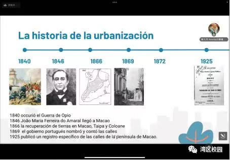 11月17日,举行讨论研习会,即本次湾区名师讲坛最后一场活动。研习会上,各学生工作坊的代表做了精彩的分享。首先澳门科技大学的黄允岑同学以生活中的具体实例结合历史文化,用西班牙语作主题为“澳门的街道和街牌历史发展”的分享。然后,我校岑嘉欣同学在“凉茶”的分享中用中西双语介绍了凉茶的历史及制作方法,凉茶在粤港澳三地的发展传承等。接下来,香港浸会大学的马钰词同学由特色美食及套餐文化等方面展开介绍了香港的茶餐厅文化。最后,我校李倩婷同学向大家分享广彩技艺在粤港澳地区的过去与现在。