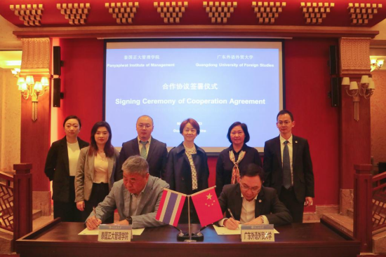 After the meeting, Panyapiwat Institute of Management and GDUFS signed a Co-operation Frame Agreement and an Agreement on the Co-construction of the “Belt and Road Research Center”.