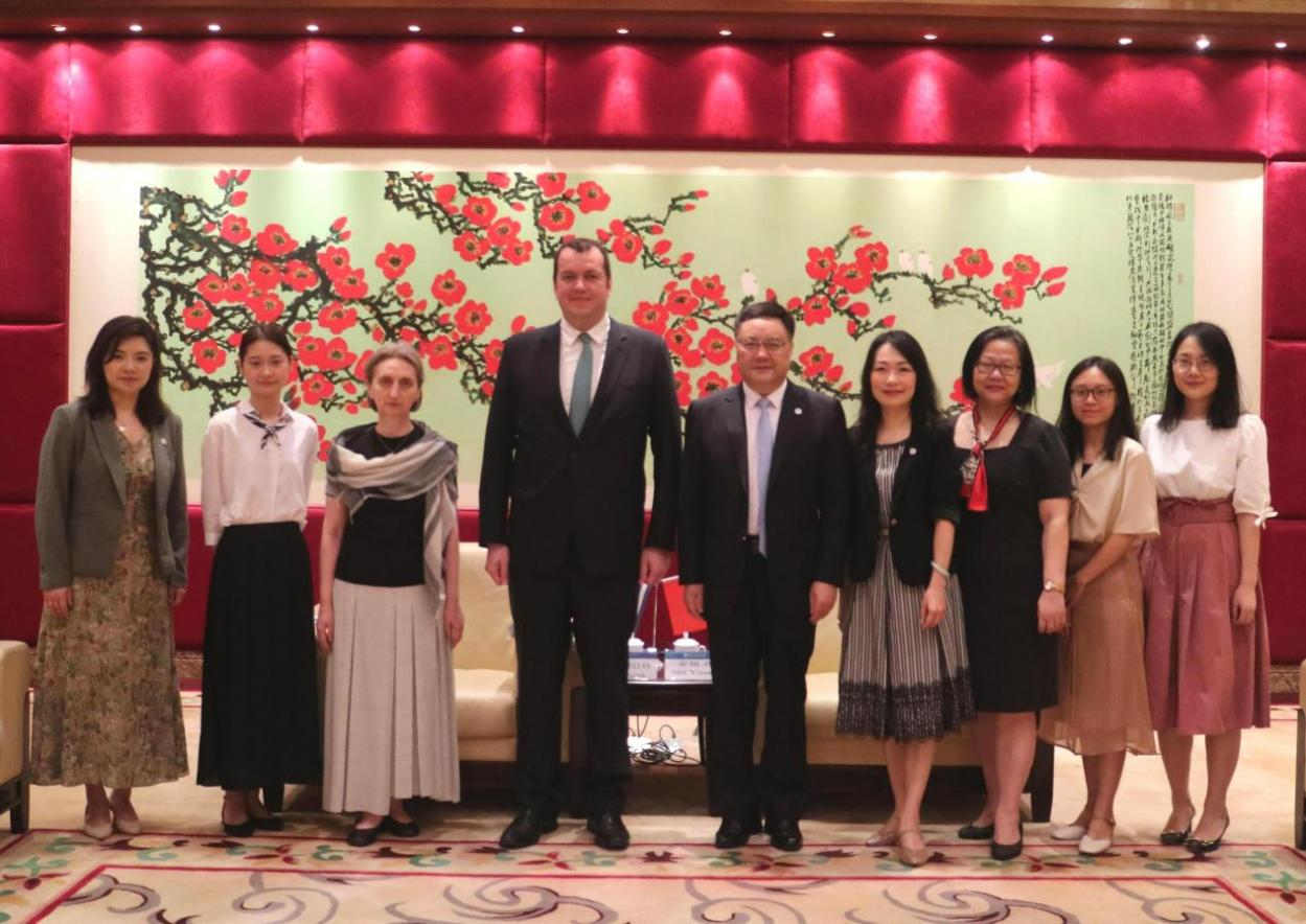 On the morning of June 9th, Martinos Mandalidis, Consul General of Greece in Guangzhou, visited GDUFS. Shi Youqi, Secretary of the Party Committee, President of GDUFS, met the guests at the VIP Reception Hall of the Administration Building of the North Campus. The two sides exchanged views on the construction of the Greek language program, the cultivation of high-level multilingual talents, and the cooperation between GDUFS and the University of Athens and other internationally renowned universities in Greece.