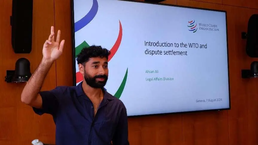 在世界贸易组织The World Trade Organization(WTO)的总部,Mr. Javier Gutierrez通过讲解WTO的历史沿革、机构设置、争端解决机构等,加深了同学们对于世界贸易的理解。WTO作为世界贸易秩序的维持者,通过一揽子协定、消极共识等制度的设置,为国家间解决贸易争端提供了一个中立、公平、公正的平台。