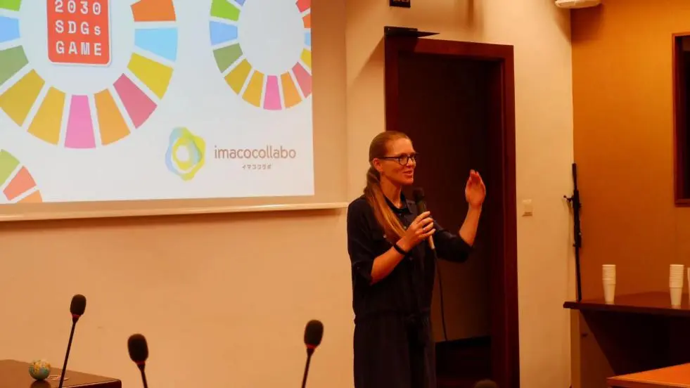 2015年9月,联合国所有成员国通过了可持续发展目标Sustainable Development Goals(SDGs),并将其纳入《2030年可持续发展议程》。Ms. Alice Richard通过一个简单的游戏,为同学们展示了可持续发展目标之间的相互关联以及达成目标所面临的困难。可持续发展目标提出了当前面临的全球挑战,包括贫困、不平等、气候、环境退化、繁荣以及和平与正义有关的挑战。