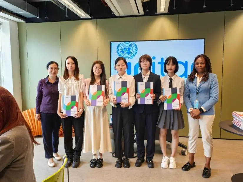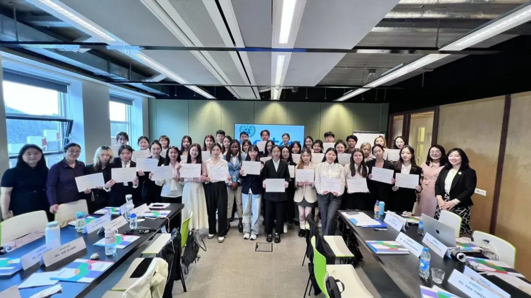 在研学活动结束前,联合国训练研究所组织了来自不同高校研学的同学分成六组,对应六个主题进行全英文汇报展示。我校学生汇报主题为“Human Rights and Humanitarian Affairs”,获得了全场最佳小组。