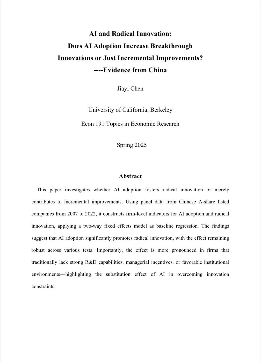 Topics in Economic Research 的课堂和我的最终英文实证论文